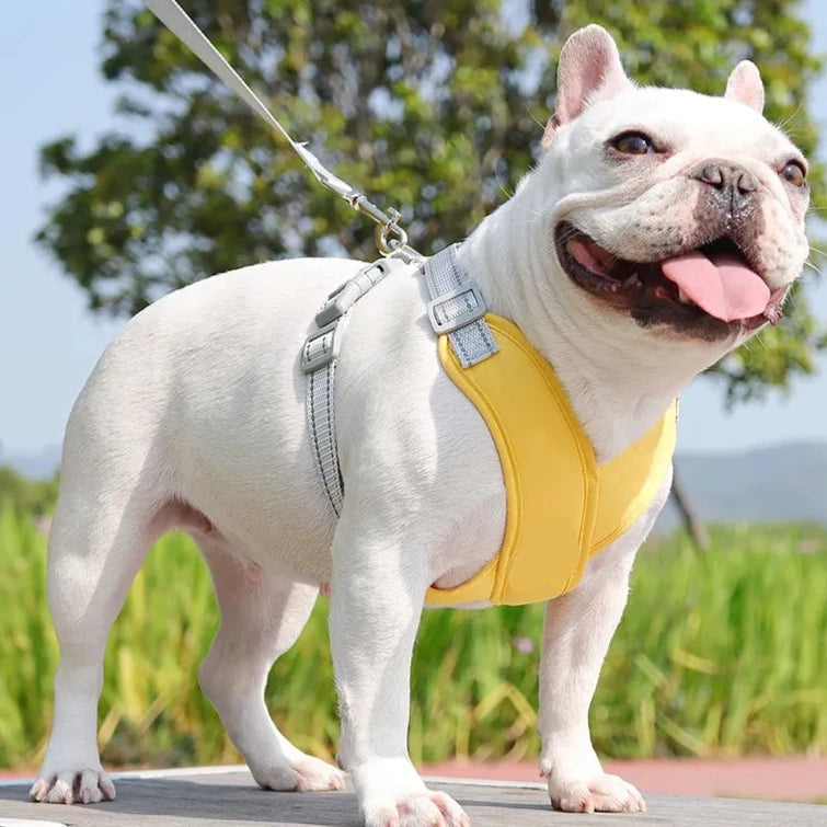 ✅ Praticidade total – Inclui coleira peitoral e guia de 1,5m, pronto para qualquer passeio.